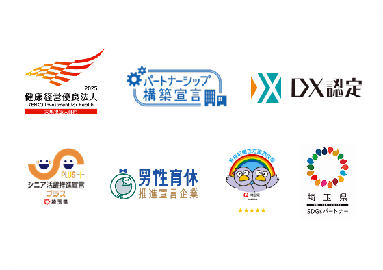 SDGsを経営の柱とし、環境負荷の低減や地域社会との連携、社員の働きがいとワークライフバランスを重視する経営を実践することにより、様々な認定資格の取得を実現しています。